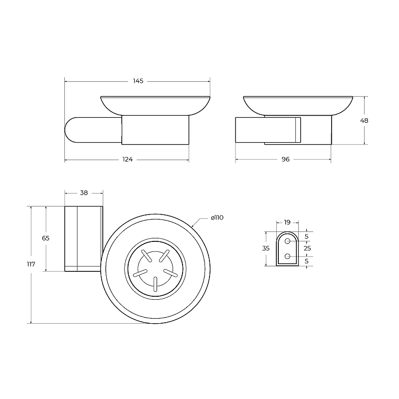 - Размеры (ШхВхГ): 145х48х117 мм.