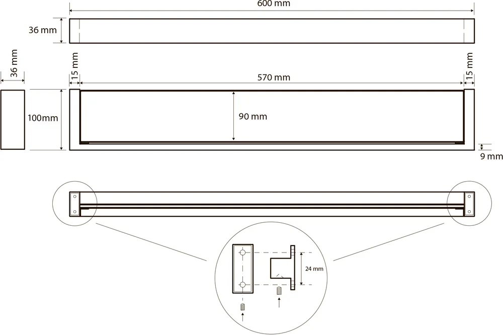 - Размер (ШхВхД): 60 х 3,6 х 9 см.