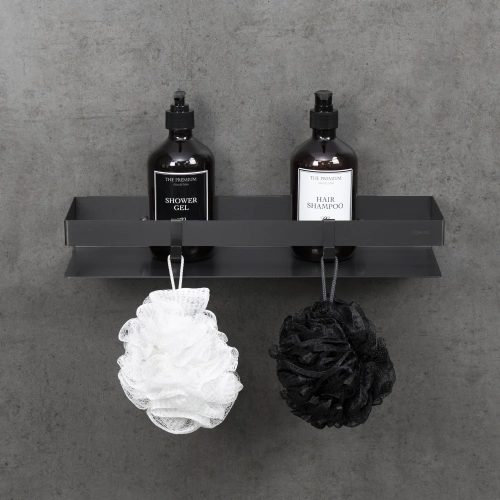 Полка для душа прямая Lemark SHELF LINE 400 мм из нерж. стали с крючками, графит (9776054)
