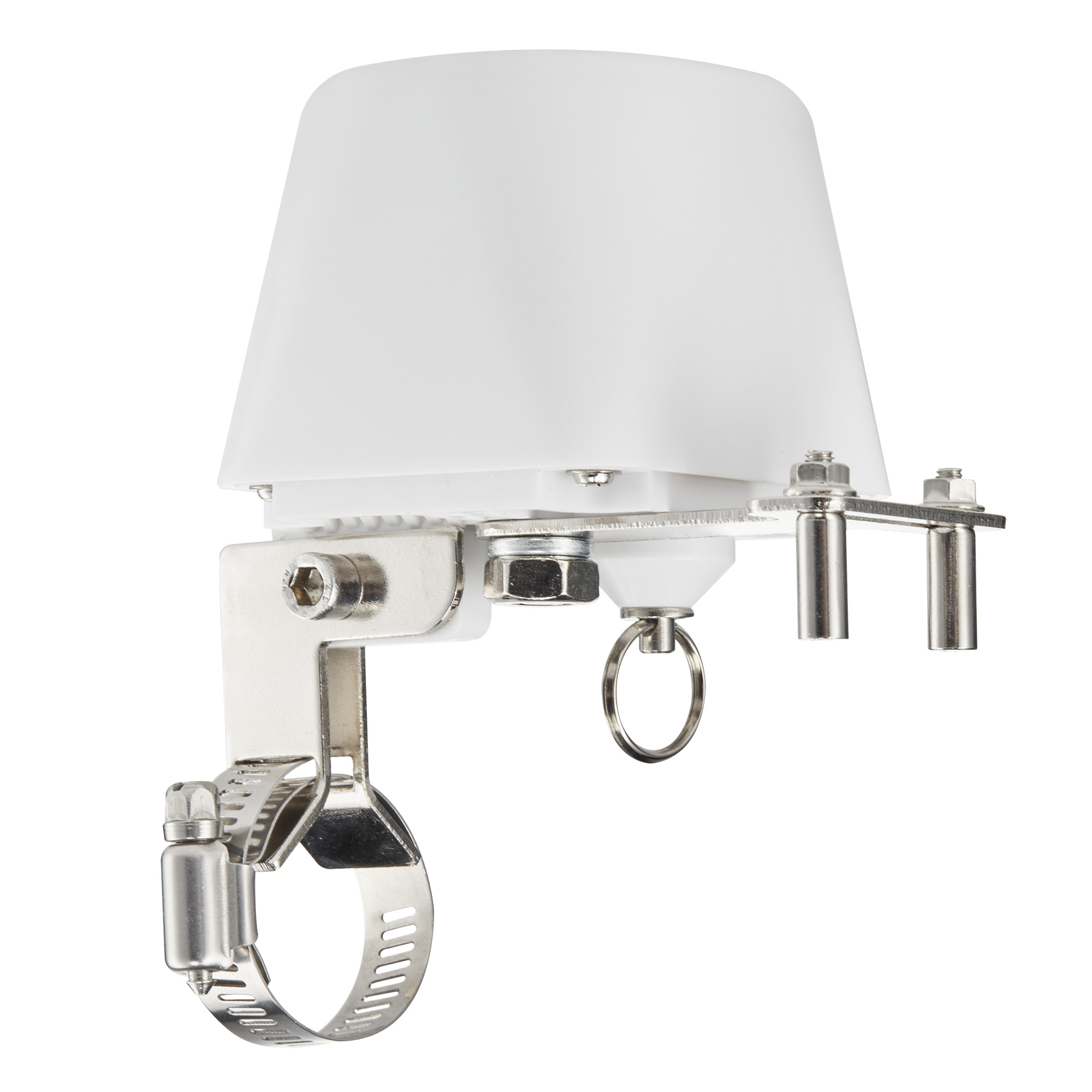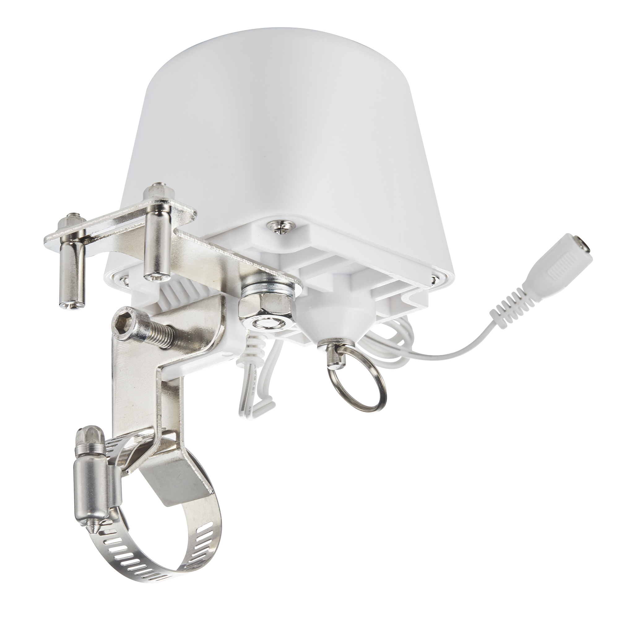 Установите манипулятор на кран подачи воды на трубопроводе домашней системы водоснабжения. Надежно зафиксируйте манипулятор, плотно затянув хомут на трубе и Т-образное крепления на рычаге шарового крана*. Подключите устройство к питанию через адаптер (входит в комплект).