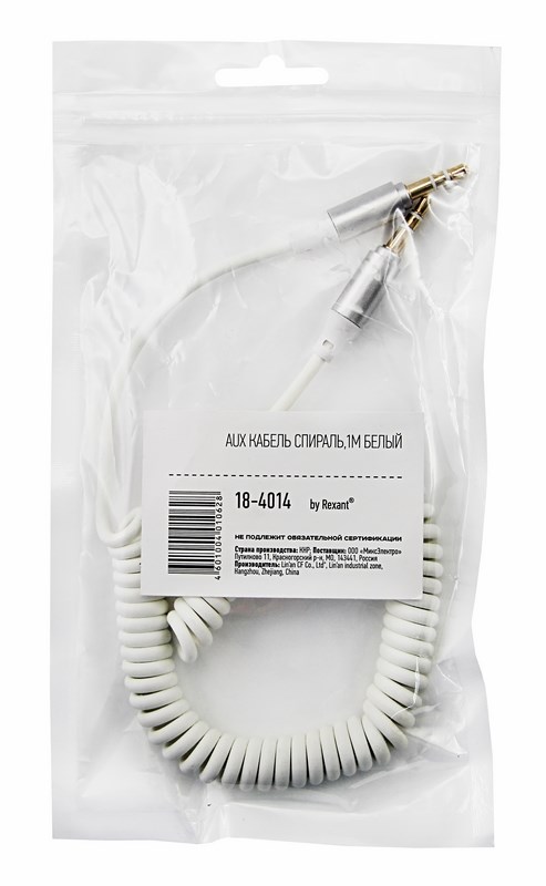 Аудиокабель AUX 3.5 мм шнур спираль 1 м белый