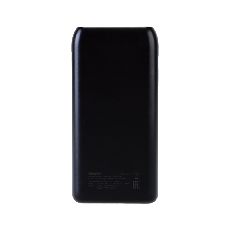 Портативное зарядное устройство Power Bank (аккумуляторная батарея) 20000 mAh с Quick Charge и Power Delivery, черное REXANT