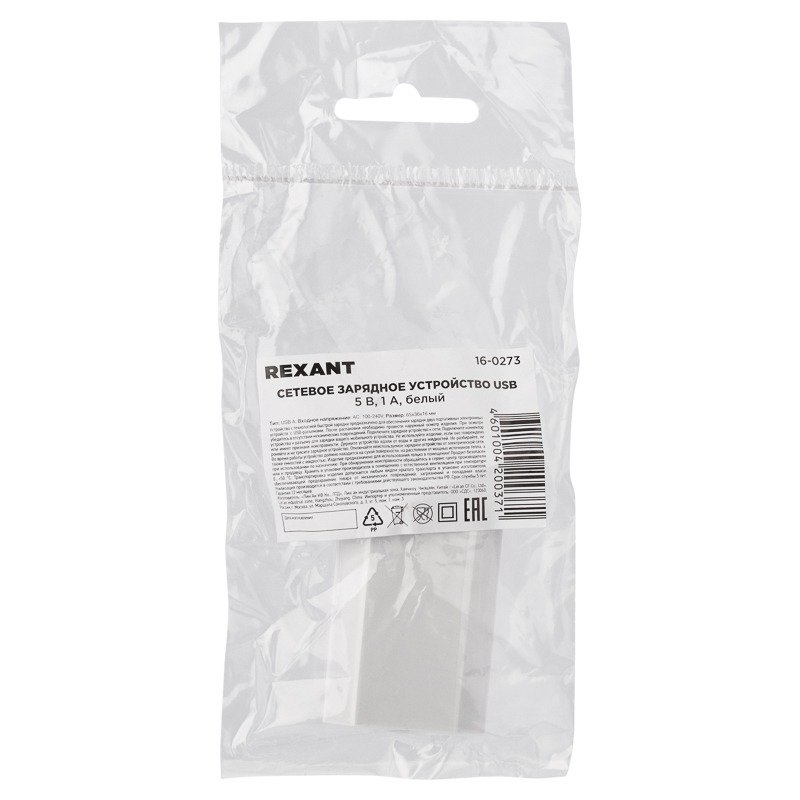 Сетевое зарядное устройство для iPhone/iPad REXANT USB, 5V, 1 A, белое