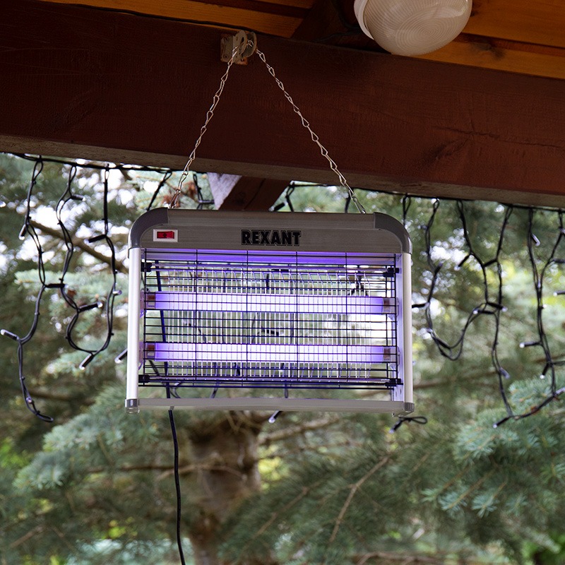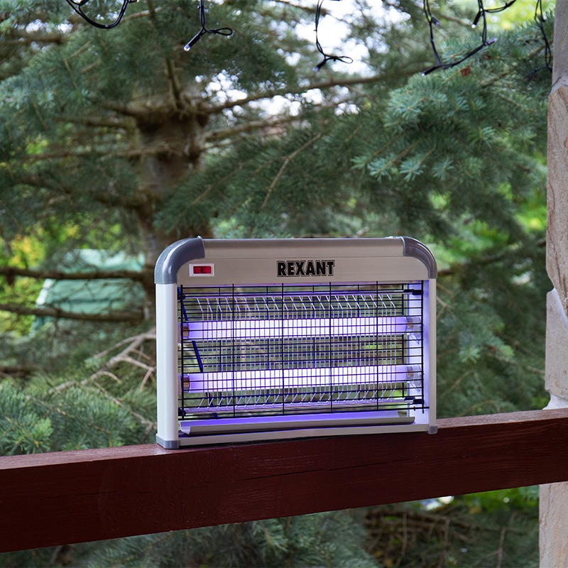 Антимоскитная лампа Rexant- современное экологически безопасное средство по борьбе с комарами, москитами, мошкой, мотыльками и другими летающими видами насекомых внутри помещения. Устройство излучает ультрафиолет и нагревается, тем самым имитирует млекопитающих животных и манит насекомых. Насекомые, подлетая, получают смертельный удар током от металлической сетки под напряжением.