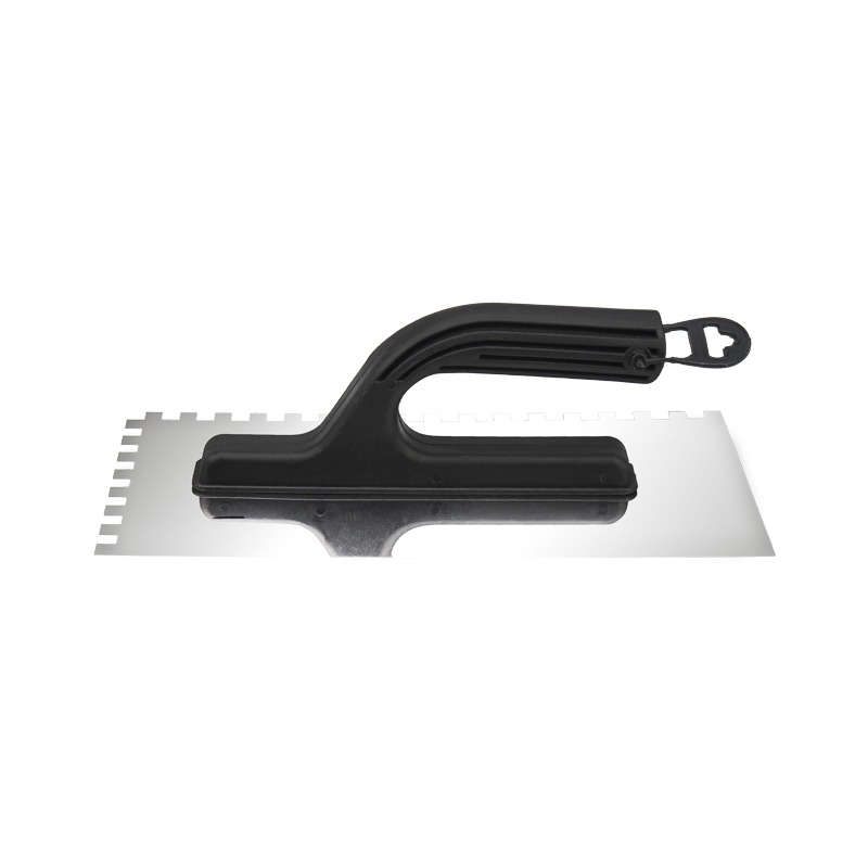 Гладилка прямая (зубчатая) изготовлена из нержавеющей стали, оснащена эргономичной пластиковой ручкой. Используется для качественного нанесения различных сухих смесей, их распределения по поверхности, а также сглаживания неровностей и швов. В ремонтных, а также отделочных работах гладилка малярная и штукатурная используется повсеместно. Она незаменима в случаях, когда необходимо нанести много раствора тонким слоем. <br> Применяется для шпаклевки, обычной и декоративной штукатурки, клея и различных строительных смесей.<br> <br> Характеристики:<br> Материал рукоятки: пластик<br> Материал рабочего полотна: нержавеющая сталь марки AISI 430<br> Ширина рабочего полотна: 130х270 мм<br> Размер зубчика (ШхВ): 4х4 мм<br> Отверстие для подвеса: есть