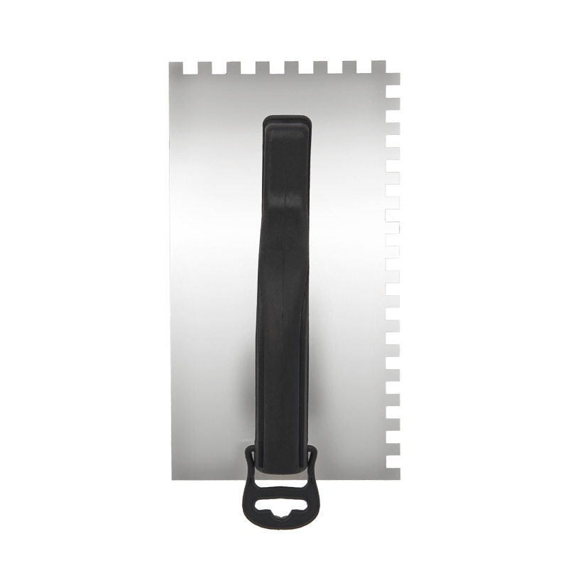 Гладилка прямая (зубчатая) изготовлена из нержавеющей стали, оснащена эргономичной пластиковой ручкой. Используется для качественного нанесения различных сухих смесей, их распределения по поверхности, а также сглаживания неровностей и швов. В ремонтных, а также отделочных работах гладилка малярная и штукатурная используется повсеместно. Она незаменима в случаях, когда необходимо нанести много раствора тонким слоем. <br> Применяется для шпаклевки, обычной и декоративной штукатурки, клея и различных строительных смесей.<br> <br> Характеристики:<br> Материал рукоятки: пластик<br> Материал рабочего полотна: нержавеющая сталь марки AISI 430<br> Ширина рабочего полотна: 130х270 мм<br> Размер зубчика (ШхВ): 4х4 мм<br> Отверстие для подвеса: есть