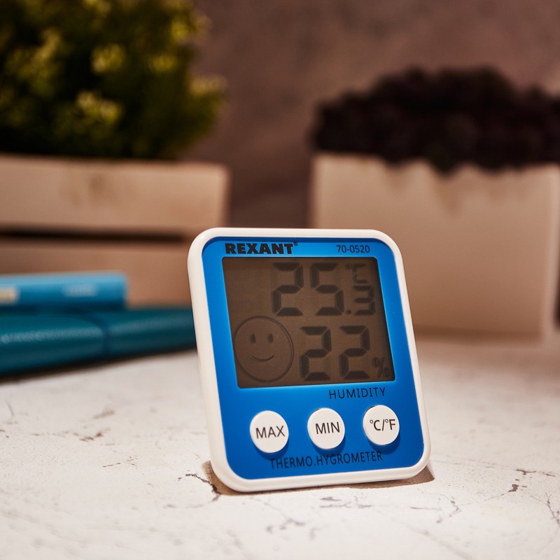 Комнатная метеостанция REXANT RX-108 предназначена для измерения показаний температуры и влажности в помещении. Регистрирует в памяти максимальное и минимальное значения температуры и влажности. Отображает общий уровень метеокомфорта в помещении. Имеет настольную подставку и магнитное крепление.