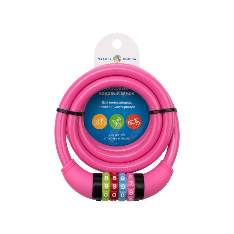 Тросовый кодовый замок ЧЕТЫРЕ СЕЗОНА – недорогое и надежное средство от кражи велосипедов, мопедов, колясок, рекламных щитов, вывесок и другого имущества. Отличается простой конструкцией, удобством транспортировки и высокой степенью стойкости к взлому.