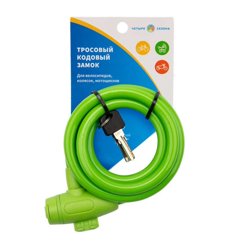 Тросовый замок с ключом ЧЕТЫРЕ СЕЗОНА – недорогое и надежное средство от кражи велосипедов, мопедов, колясок, рекламных щитов, вывесок и другого имущества. Отличается простой конструкцией, удобством транспортировки и высокой степенью стойкости к взлому.
