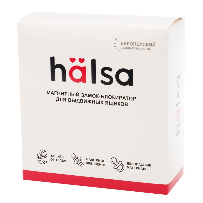 Магнитный замок-блокиратор для выдвижных ящиков HALSA помогает хранить недоступными для детей вещи, острые предметы, медикаменты, находящиеся в выдвижном ящике комода или стола.