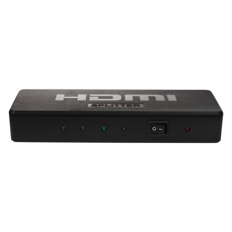 HDMI делитель REXANT – это устройство, позволяющее распределять сигналы от одного устройства к нескольким. Применяется в случаях, когда необходимо один и тот же сигнал разделить на несколько выводов, например, подключить DVD плеер, компьютер или игровую приставку к нескольким мониторам. При этом сигнал делится на четыре выходных устройства без потери качества изображения.<br> Устройство оснащено встроенным усилителем, что позволяет передавать сигнал на большие расстояния. <br> Делитель поддерживает большое количество видеоразрешений и самых современных многоканальных аудиоформатов (Dolby TrueHD и DTS-HD Master Audio), а также поддерживает 3D.<br> Сплиттер прост в установке и удобен в использовании, оптимально подходит для демонстрации ЖК-панелей в магазинах, а также для инсталляций с несколькими экранами.<br> Материал корпуса – металл.<br> <br> - Поддержка 3D;<br> - Полоса пропускания 225 МГц или 2.25Gpbs;<br> - Поддержка воспроизведения аудиоформатов Dolby TrueHD и DTS-HD Master Audio , профессиональное качество звука;<br> - Поддерживаемые форматы HDTV:480i/576i/480p/576p/720p/1080i/1080P;<br> - Расстояние передачи (28AWG HDMI кабель): 1080i 10M (вход) +15 M (выходы); 1080P<br> 5M (вход) +8 M (выходы);<br> - Совместимость с HDCP;<br> - Поддержка HDMI 1.4 и HDMI более ранних версий;<br> - Прост в установке и не требует настройки;<br> - Входной HDMI разъем: HDMI А <br> - Выходной HDMI разъем: HDMI A<br> - Размеры: 110X68X30 мм<br> - Питание: 5 В;