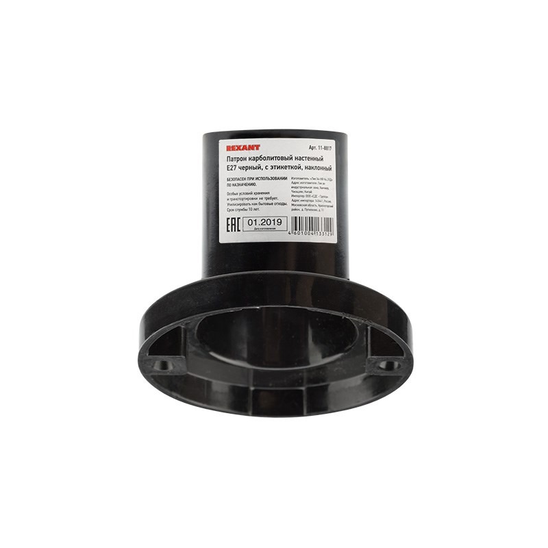 Патрон карболитовый настенный Е27 черный c этикеткой наклонный REXANT