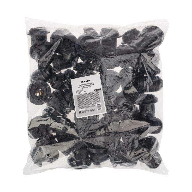 Патрон пластиковый термостойкий подвесной с кольцом Е27, черный REXANT
