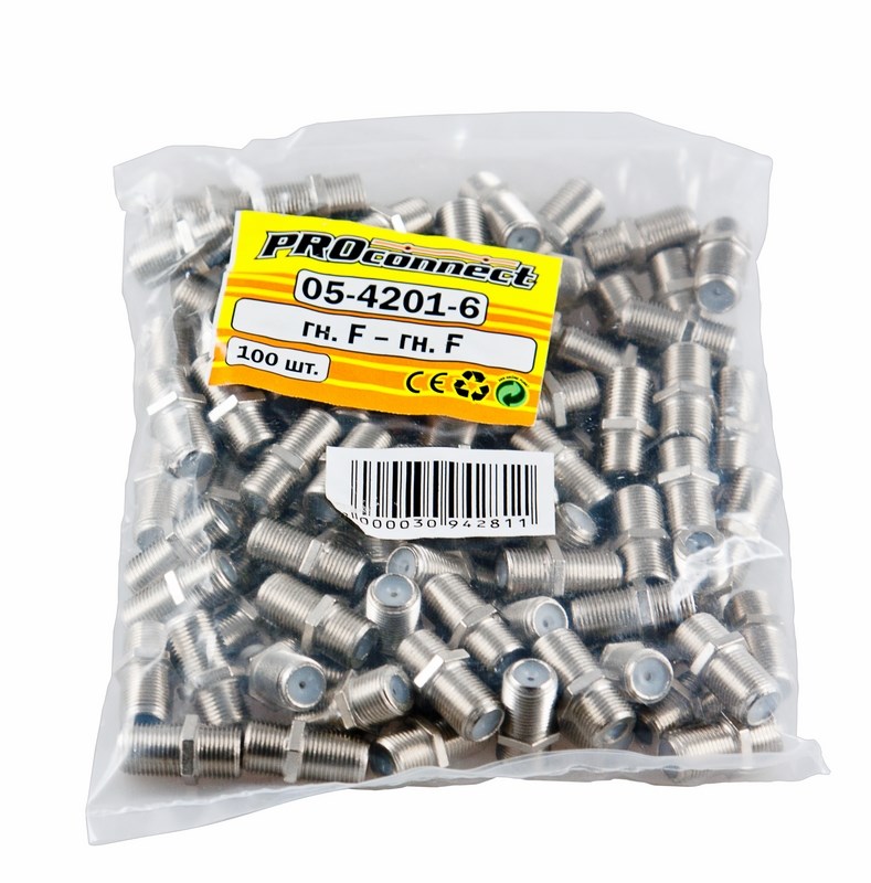 ПЕРЕХОД гнездо F - гнездо F "БОЧКА" без кольца PROconnect предназначен для соединения двух частей коаксиального кабеля волновым сопротивлением 50 или 75 Ом, на концах которых расположены штекеры F-разъема. Применяется главным образом для подключения эфирного, кабельного и спутникового телевидения к телевизионному оборудованию. В частности, он позволяет увеличить длину антенного кабеля или соединить поврежденный участок. Изготовлен переход из никелированного сплава первичной меди (биметалл), что обеспечит долговечность соединения и возможность применять его в условиях климатических перепадов. Разъем соединяет кабель методом накрутки F-коннектора с обеих сторон после соответствующей зачистки контактов и не требует в ходе монтажа применения каких-либо специальных инструментов. Такой высокочастотный соединитель имеет ряд положительных преимуществ: