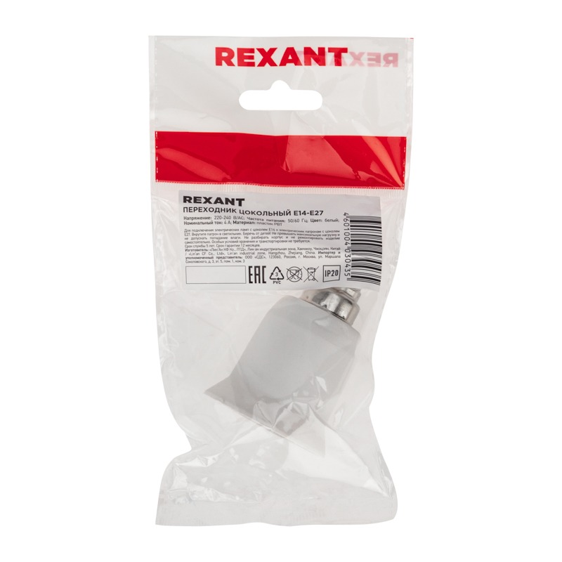 Переходник цокольный Е-14 на Е-27 REXANT применяется при переходе от электрических ламп с цоколем Е14, к электрическим лампам с цоколем Е27. Товар распространен в сфере строительства, при монтажных работах и в быту, когда нужно заменить один тип цоколя лампы на другой. Резьбовая система быстрого соединения электрических ламп обеспечивает надежный контакт.