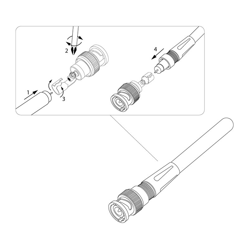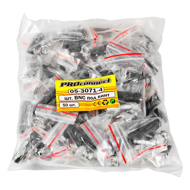 РАЗЪЁМ штекер BNC под винт с колпачком PROconnect предназначен для подключения коаксиального кабеля c волновым сопротивлением 50 и 75 Ом, диаметром до 7 мм, к видеокамерам, видеорегистраторам, мониторам и другим радиоэлектронным устройствам. BNC-коннектор (BNC сокр. от Bayonet Neill Concelman) под винт - электрический разъем с байонетной фиксацией закрепляется на кабеле зажимом с помощью винта центрального контакта (центральная жила - под винт, оплетка - обжимается). Этот способ крепления значительно проще и быстрее, чем пайка, но его надежность и качество соединения остаются на неизменно высоком уровне. Пластиковый колпачок защищает соединения и предотвращает кабель от перегиба в месте крепления к разъему. BNC-разъем изготовлен из материалов: