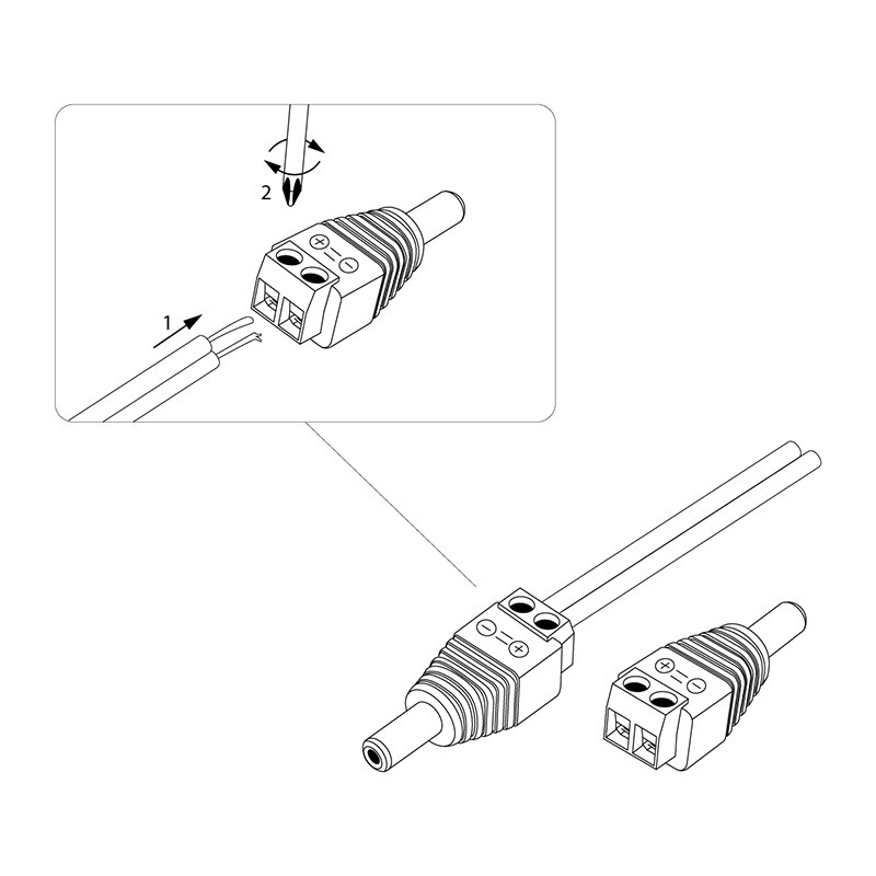 РАЗЪЁМ питания штекер 2.1х5.5 с клеммной колодкой PROconnect предназначен для оперативного подключения питания различного оборудования (систем видеонаблюдения, питания зарядных или других бытовых устройств) к источнику питания постоянного тока 12/24В (DC). Такой двухконтактный штекер монтируется на кабель с помощью винтовых зажимов. Этот способ крепления значительно проще и быстрее, чем пайка, но его надежность и качество соединения остаются на неизменно высоком уровне. Никелевое покрытие контактов повышает долговечность разъема и позволяет применять его в условиях климатических перепадов. Разъем прямой формы имеет размеры 2.1х5.5мм. Корпус изготовлен из ударопрочного пластика. Монтаж возможно осуществлять с разными типами кабелей: ШВВП, комбинированный провод или витая пара. Диапазон рабочих температур от -15℃ до +50℃. Джек часто используется для замены вышедших из строя разъемов шнура и подходит к стандартным резервным источникам питания (DC).