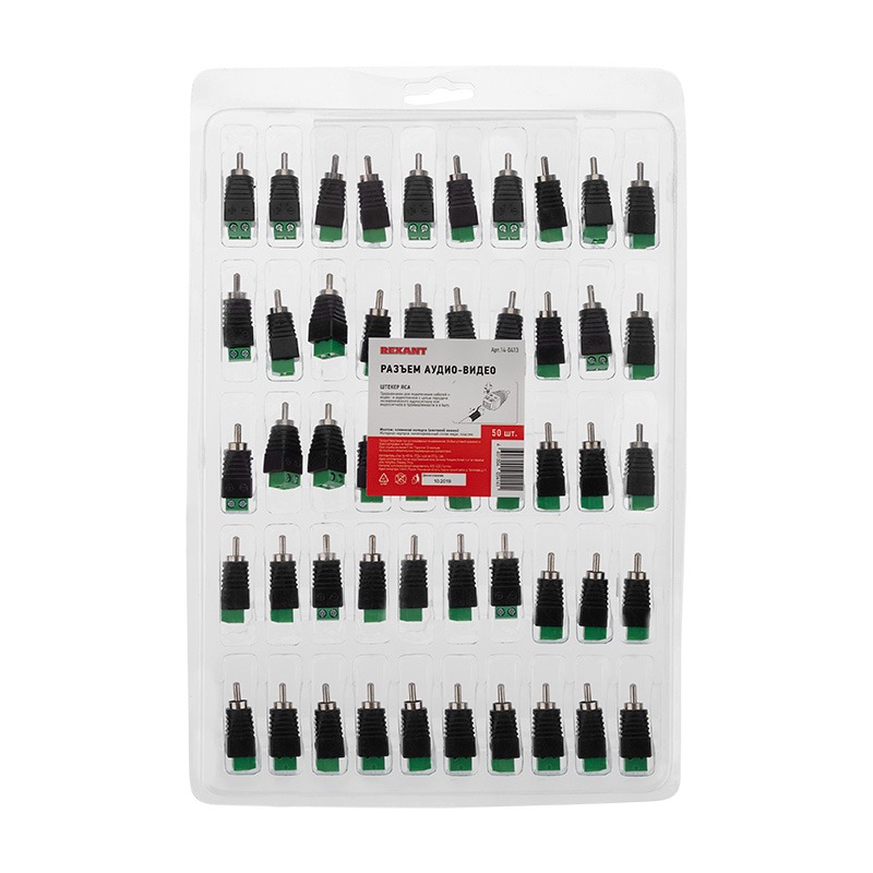 РАЗЪЁМ штекер RCA с клеммной колодкой REXANT предназначен для оперативного соединения кабелей с видео- и аудиоаппаратурой. Разъем RCA (используется более 60 лет, англ. Radio Corporation of America, в просторечии «тюльпан», AV-разъём) - стандартизированный разъем, передающий монофонический аудиосигнал или видеосигнал через кабель на видео- и аудиотехнику: профессиональные звуковые карты (для линейных входов и выходов), DVD-плееры, видеомагнитофоны, VHS-видеокамеры и другую аппаратуру, имеющую соответствующий разъем. Установка провода на разъеме производится с помощью винтовых зажимов. Этот способ монтажа на проводе значительно проще и быстрее, чем пайка и обжим, но его надежность и качество соединения остаются на неизменно высоком уровне. Корпус разъема изготовлен из ударопрочного пластика, а контакты никелированы. Диапазон рабочих температур от -30℃ до +80℃. Штекер может использоваться для соединения провода в случае обрыва или замены вышедших из строя разъемов шнура. Простой монтаж и надёжное соединение, обеспечат защиту от помех и внешних воздействий.