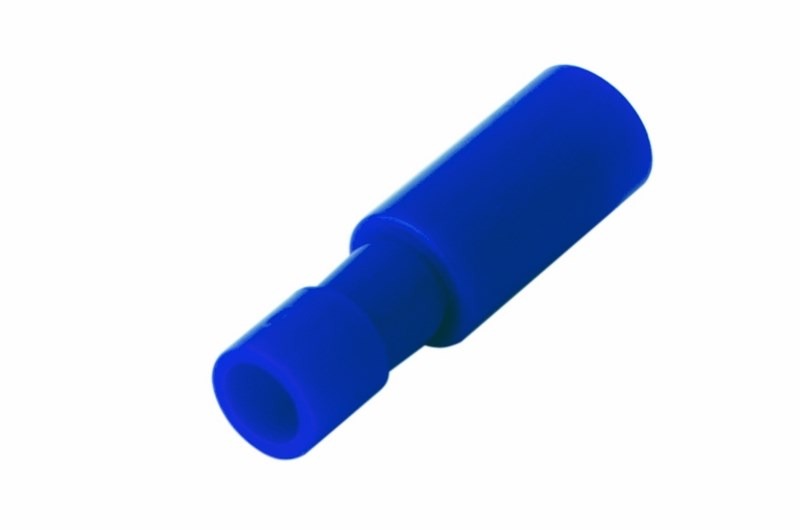 Клемма штекерная полностью изолированная (гнездо ø 4 мм) 1.5-2.5 мм² синяя REXANT предназначена для создания качественного «мобильного» подключения электрооборудования или соединения проводов между собой, которое при необходимости возможно разъединить без лишних усилий. Такая клемма используется для оконцовывания многожильных медных проводов при монтаже мобильных электрических контактных соединений на подвижном составе (автомобиле-, вагоно-, самолето- и судостроении). Отличительной особенностью такой клеммы является создание максимально изолированного соединения в сочетании с соответствующим штекером. Изолированная штекерная клемма REXANT состоит из двух компонентов: металлического коннектора (гнездо) и защитного изолятора, закрывающего коннектор полностью. Металлический коннектор изготовлен из латуни, с поверхностным электролитическим лужением, а изолятор клеммы из поливинилхлорида (ПВХ), надежно защищающий место обжима кабеля и контактную часть от физических воздействий, а человека от поражения электрическим током. Обжатие производится специальными пресс-клещами (ht-301 H, ht-301 N, ht-301 W) поверх защитного изолятора. Цвет изолятора синий.