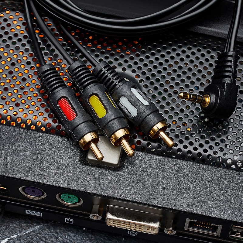 Шнур REXANT 1,5 м предназначен для передачи аналогового аудиосигнала и широко применяется для видео- и аудиосистем. Используется для совместной эксплуатации домашней и профессиональной аудиоаппаратуры, имеющей разъемы типа 3,5 стерео и RCA: микрофоны, электронные музыкальные инструменты, плееры, усилители звука, телевизоры, видеоприставки, мобильные телефоны и т.д. <br> С одной стороны шнура располагается угловой четырехконтактный (4C) штекер разъема 3,5 мм , а с другой — три штекера разъема RCA. <br> Разъемы выполнены из легкого и прочного пластика. Контакты штекеров покрыты слоем золота, нанесенного по технологии вакуумного напыления для улучшения качества передачи сигнала.<br> Благодаря качеству используемых материалов и высокотехнологичному исполнению достигается профессиональный уровень надежности шнура.