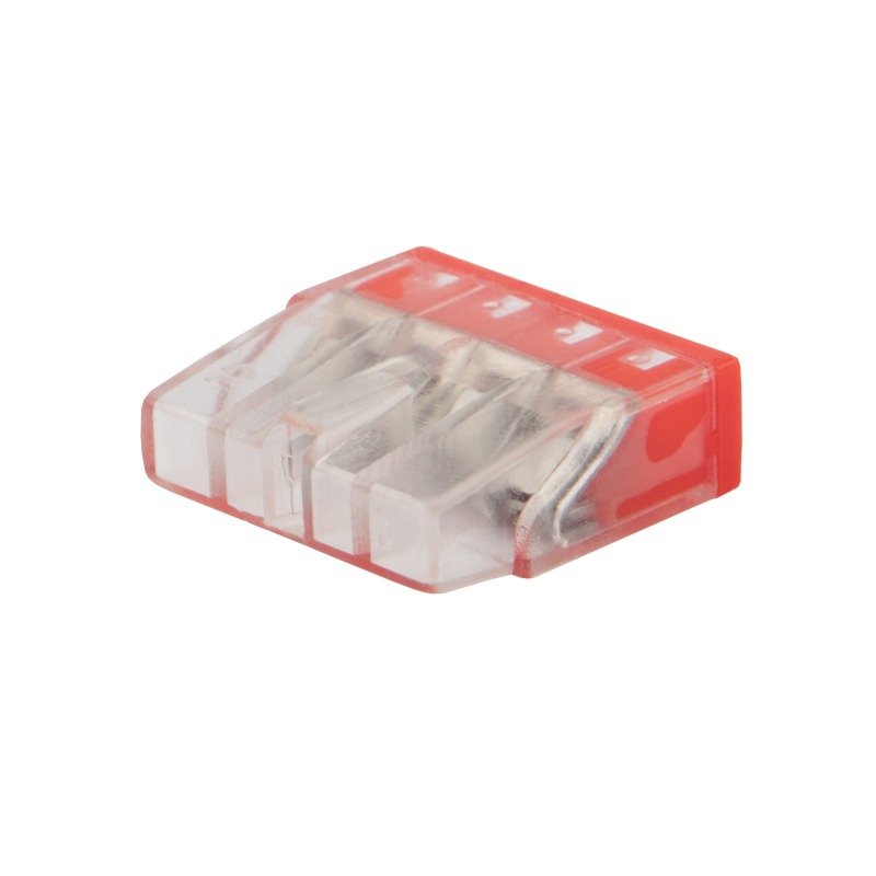 Компактный прозрачный корпус удобен для контроля соединения, а яркая цветовая разметка способствует визуальному различию клемм по количеству проводников.