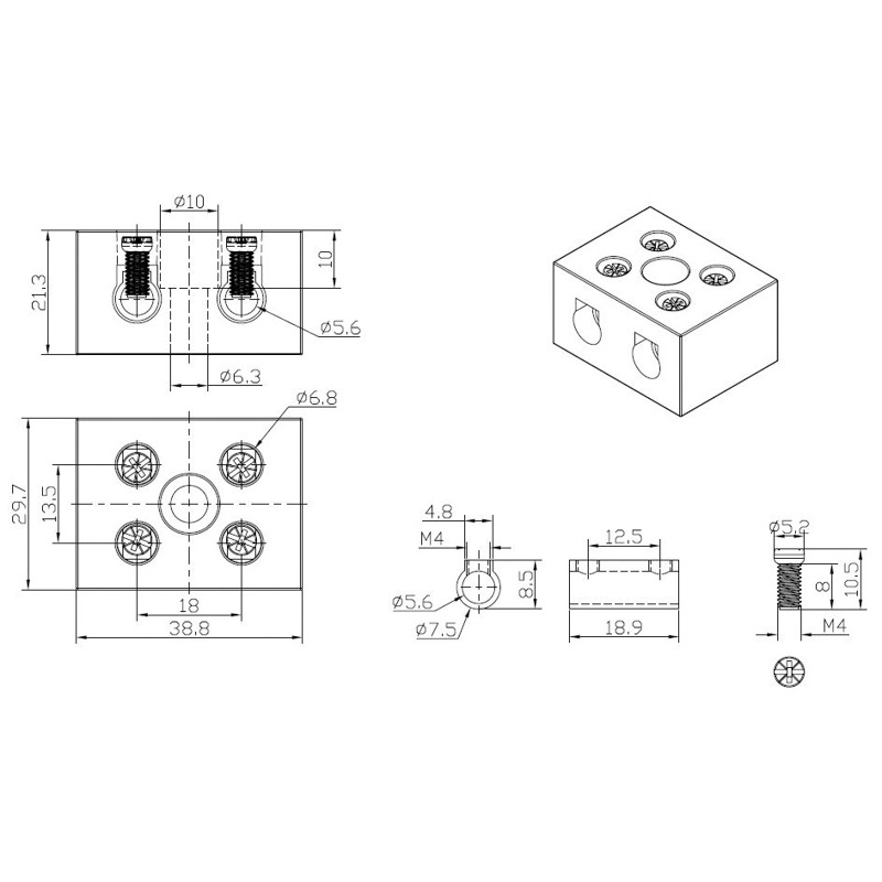 Клемма керамическая винтовая КВ 16 мм² 2 пары контактов с крепежным отверстием (50 шт. /уп. ) REXANT