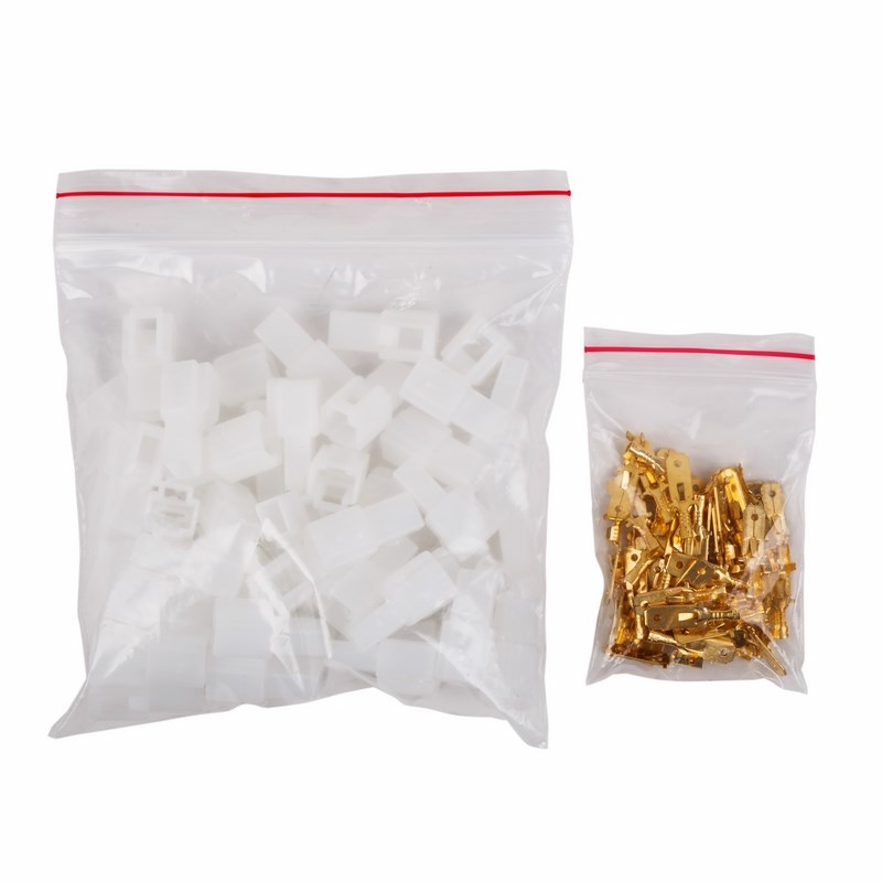 Клемма плоская (штекер) изготовлена из латуни. Колодка представляет собой корпус из ПЭ. Обжатие производится специальными пресс-клещами (ht-202; ht-230; ht-301) по жиле и по изоляции, что обеспечит максимальную прочность соединения с проводом. Каждая клемма имеет отверстие, служащее фиксатором замкового типа с гнездовым разъемом.