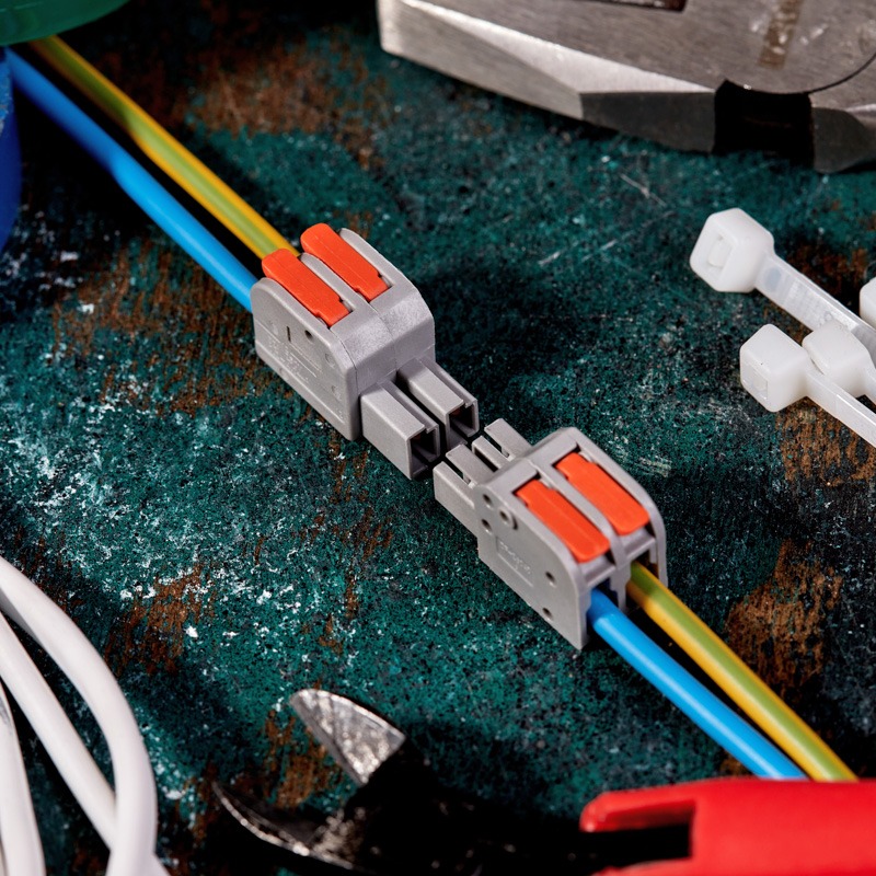 Многоразовая проходная клемма СМК REXANT с разъемным соединением предназначена для соединения медных одножильных и многожильных зачищенных проводников. Контакт осуществляется путем зажима проводника пластиной. Конструкция предотвращает случайное размыкание контакта.<br> <br> Характеристики:<br> Материал: Полиамид 66<br> Количество полюсов: 2<br> Материал контактов: луженая медь<br> Зажим: сталь<br> Цвет: серый<br> Напряжение: 250 В<br> Типы подключаемых проводов: одножильные, многожильные<br> Ток: для одножильных проводов — 32 А, для многожильных проводов — 24 А<br> Поддерживаемое сечение: 4x0.2-4 мм² (одножильный провод), 4x0.5-2,5 мм² (многожильный провод)<br> Рабочая температура: –40...+85 °C<br> Длина зачистки изоляции: 10 мм