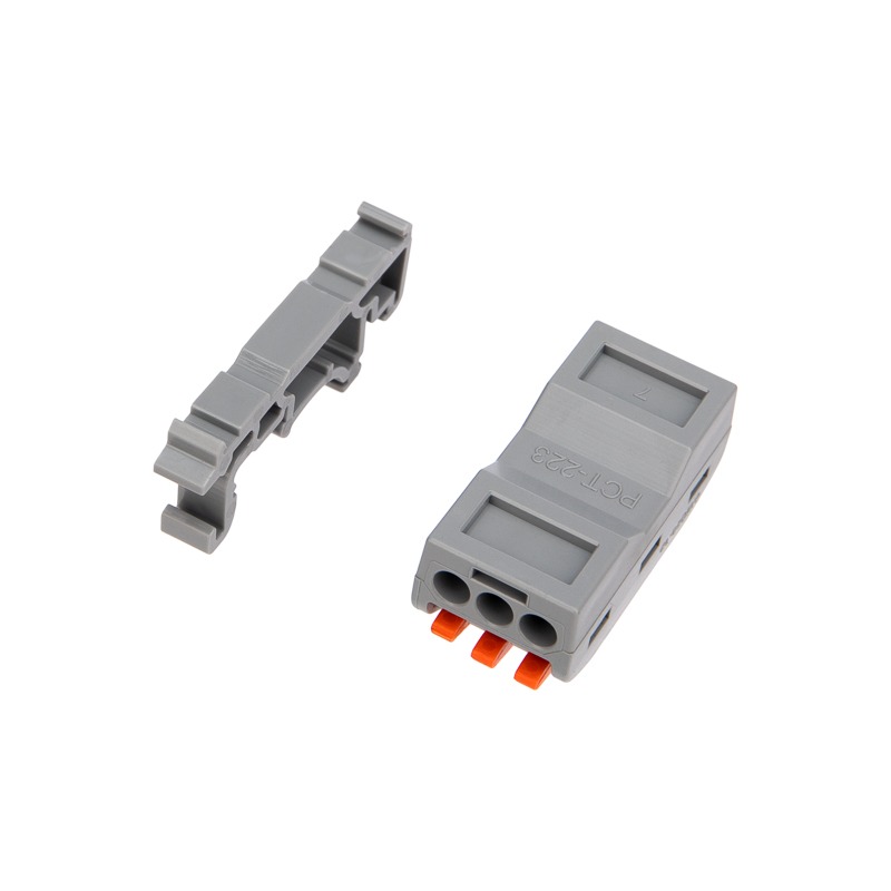 Клемма СМК 222-423D проходная 3-полюсная, с креплением на DIN-рейку (0,08-4 мм²), серая (5 шт. /уп. ) REXANT