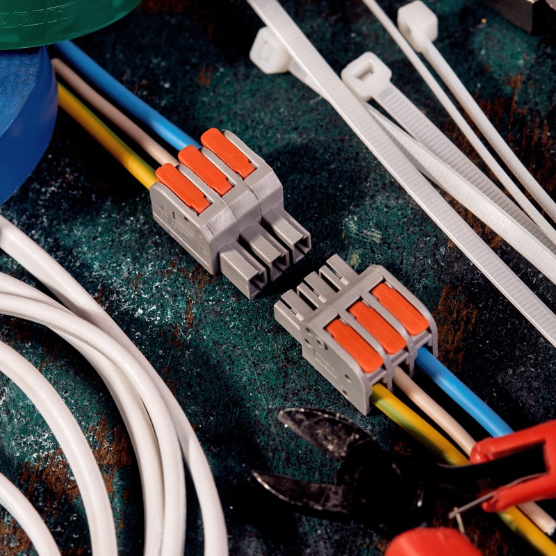 Многоразовая проходная клемма СМК REXANT с разъемным соединением предназначена для соединения медных одножильных и многожильных зачищенных проводников. Контакт осуществляется путем зажима проводника пластиной. Конструкция предотвращает случайное размыкание контакта.<br> <br> Характеристики:<br> Материал: Полиамид 66<br> Количество полюсов: 3<br> Материал контактов: луженая медь<br> Зажим: сталь<br> Цвет: серый<br> Напряжение: 250 В<br> Типы подключаемых проводов: одножильные, многожильные<br> Ток: для одножильных проводов — 32 А, для многожильных проводов — 24 А<br> Поддерживаемое сечение: 6x0.2-4 мм² (одножильный провод), 6x0.5-2,5 мм² (многожильный провод)<br> Рабочая температура: –40...+85 °C<br> Длина зачистки изоляции: 10 мм