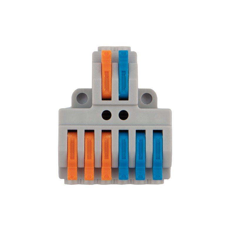 Клемма СМК 2х3 проходная разветвительная 2 полюса, с монтажной площадкой (1 ввод, 3 вывода на полюс), (5 шт. /уп. ) REXANT