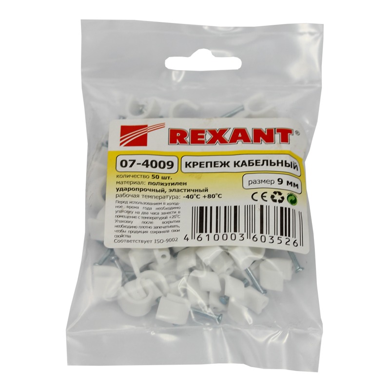 Крепеж кабеля круглый 9 мм, белый (упак. 50 шт) REXANT