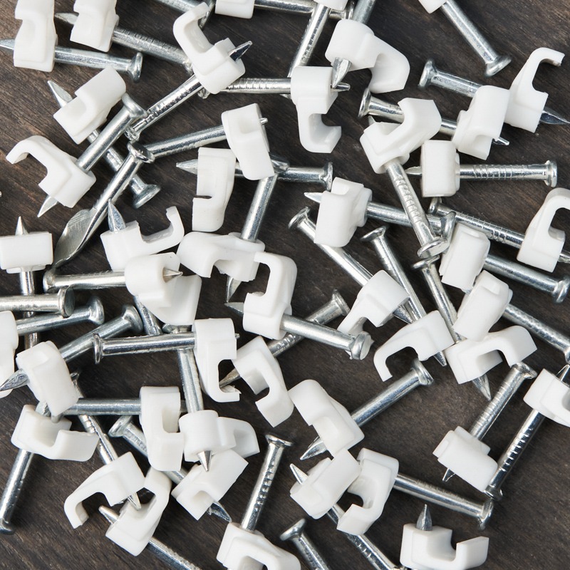 Высококачественный плоский крепеж кабеля REXANT представляет собой П-образную пластиковую скобу, выполненную из качественного пластика и идущую в комплектации с гвоздём из закаленного металла, при помощи которого данная скоба крепит к стенам, потолкам и несущим конструкциям кабели, провода.