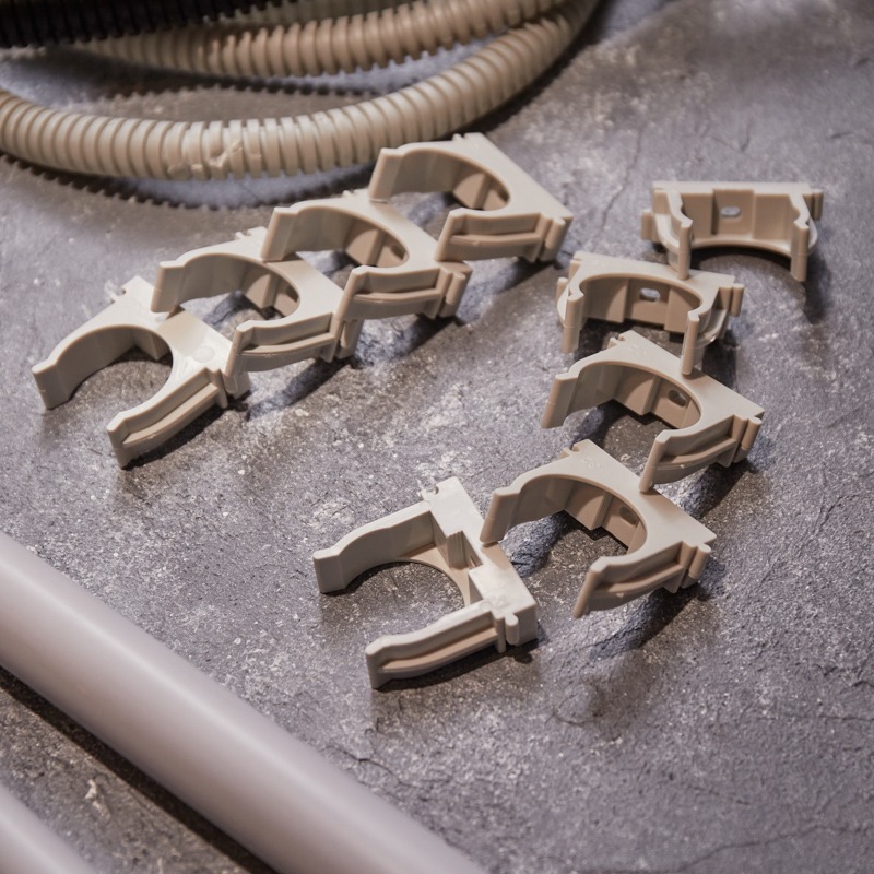 Изделие оснащено фиксаторами типа "шип-паз": при установке возможно соединять крепежи-клипсы различных диаметров.