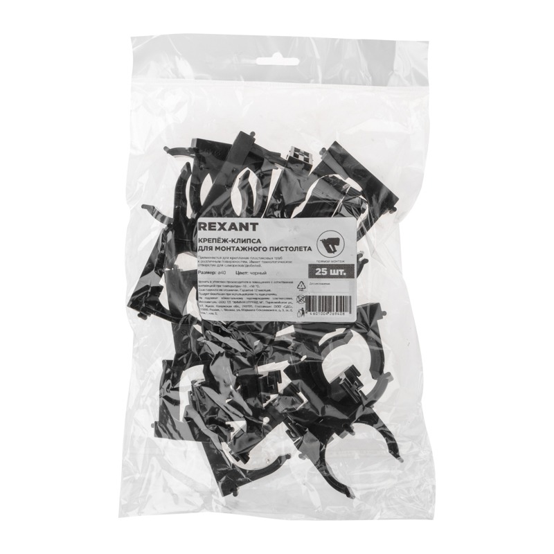 Крепеж-клипса для монтажного пистолета Ø40 мм, черная REXANT