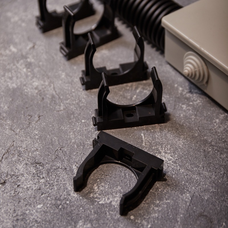 Изделие оснащено фиксаторами типа "шип-паз": при установке возможно соединять крепежи-клипсы различных диаметров.