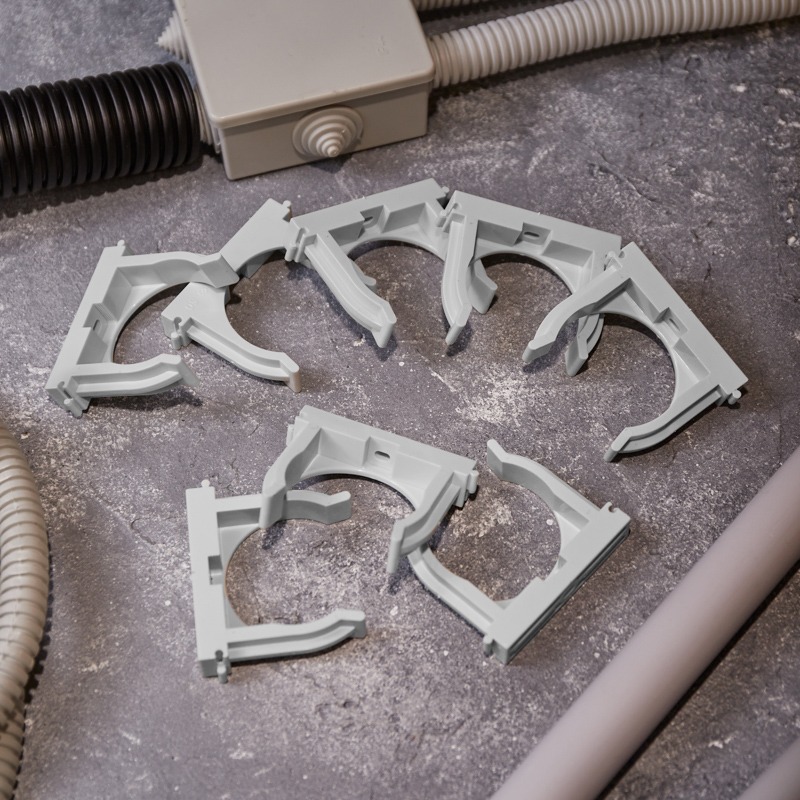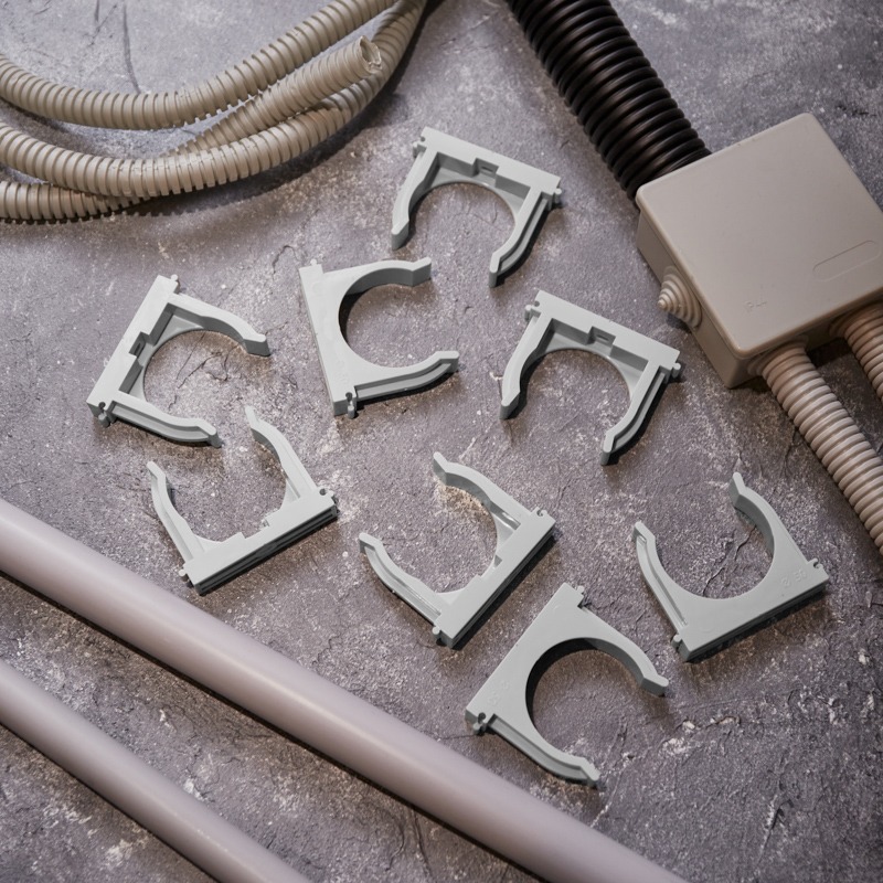 Крепеж-клипса для монтажного пистолета предназначен для крепления пластиковых труб к стене, потолку или полу. Выдерживает повышенные механические нагрузки, возникающие при монтаже с использованием пневмопистолета. Изготовлен из качественных материалов по современным технологиям пластикового литья.<br> Изделие оснащено фиксаторами типа "шип-паз": при установке возможно соединять крепежи-клипсы различных диаметров. <br> Для установки элемента предусмотрено технологическое отверстие под дюбель или саморез, а также уменьшенное отверстие под гвоздь по бетону.<br> Широкие лапки изделия обеспечивают надежную фиксацию труб без возникновения замятий. <br> Благодаря качественному пластику и прочным ребрам жесткости крепеж-клипса не ломается и не ослабляется под воздействием низких и высоких температур.