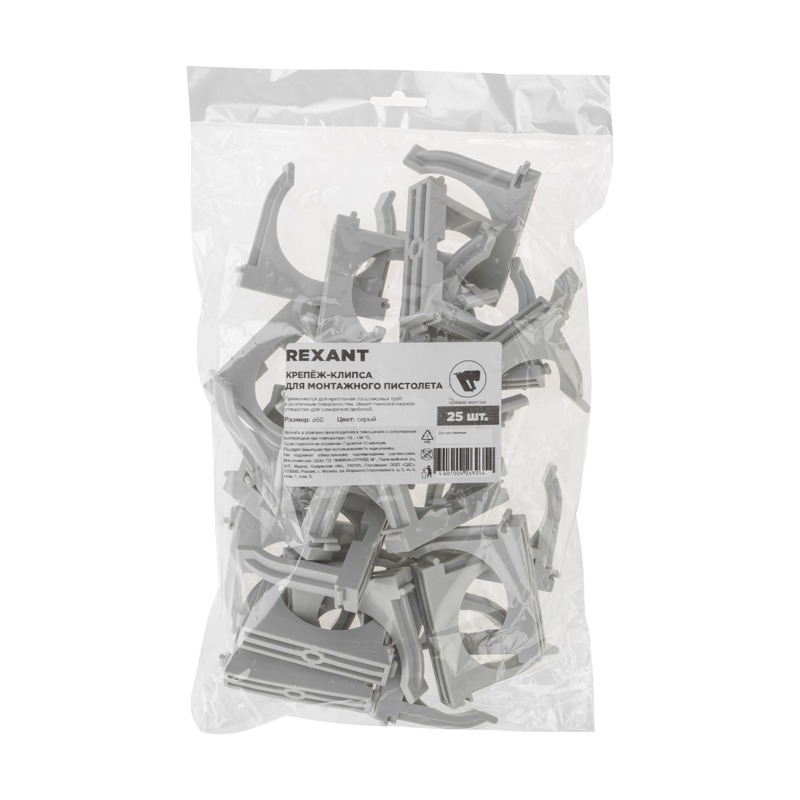 Крепеж-клипса для монтажного пистолета Ø 50 мм, серая (25 шт/уп) REXANT