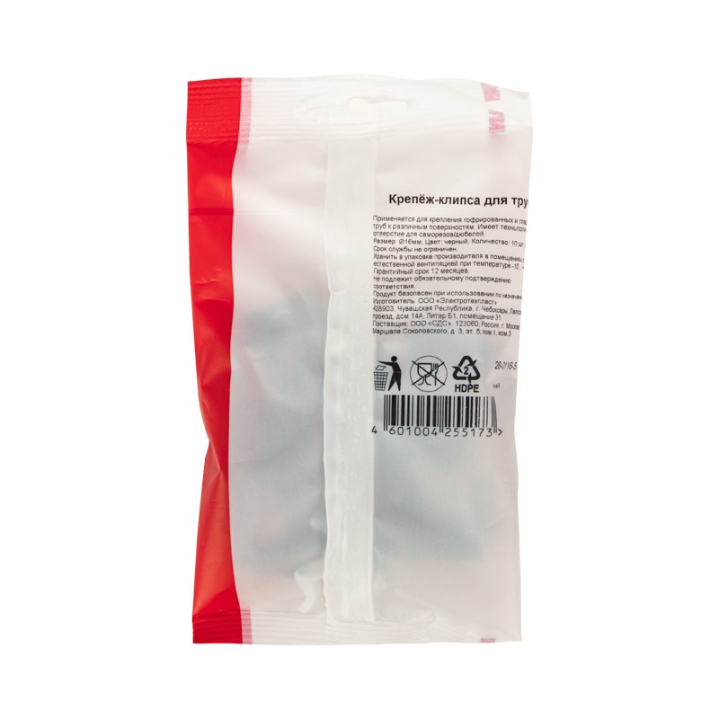 Крепеж-клипса для трубы Ø16 мм черная REXANT