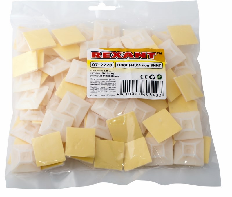 Площадка под винт самоклеящаяся REXANT 28х28 мм, белая, упаковка 100 шт.