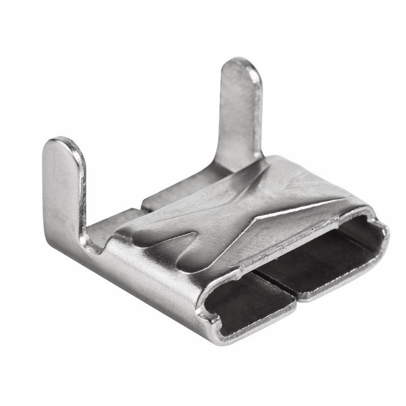 Усиленная скрепа (бугель) для монтажной ленты. Изготовлена из нержавеющей стали AISI 304. Предназначена для фиксации монтажной ленты на анкерных и угловых опорах.