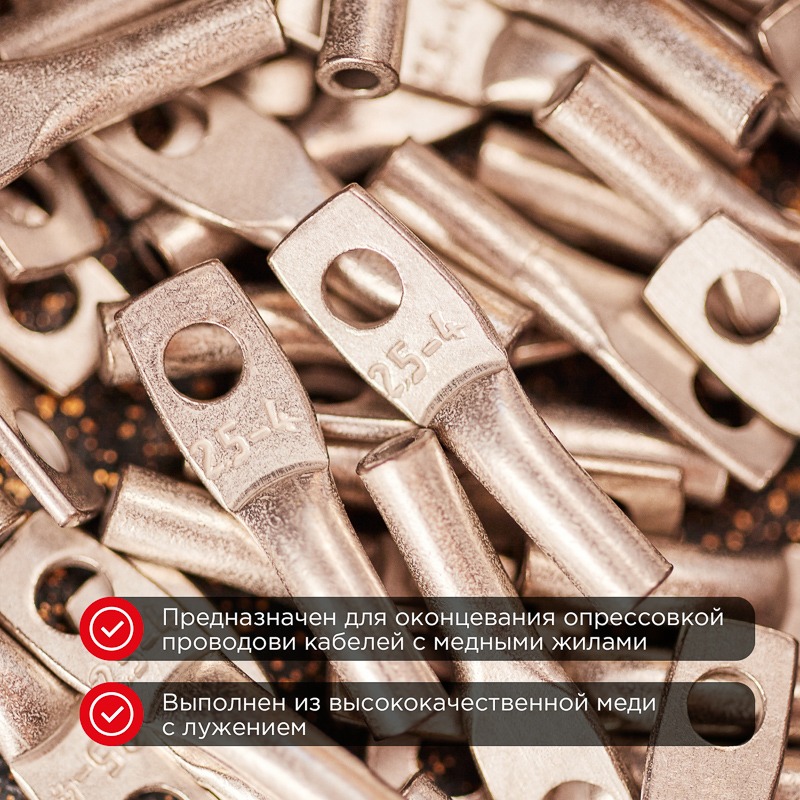 Наконечник медный луженый ТМЛ 2,5–4–2,6 (2,5мм² - Ø5мм) ГОСТ 7386-80 (в упак. 10 шт. ) REXANT