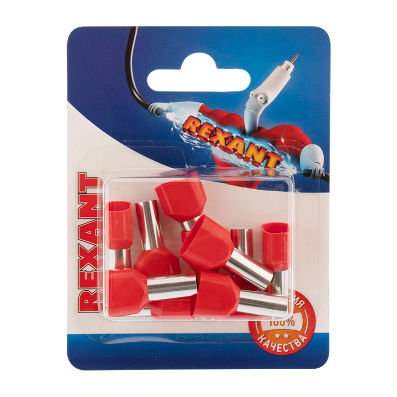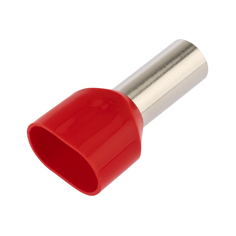 Наконечник штыревой втулочный изолированный F-14 мм 2х10 мм² (НШВи(2) 10-14/ Ги2 10-14) красный REXANT