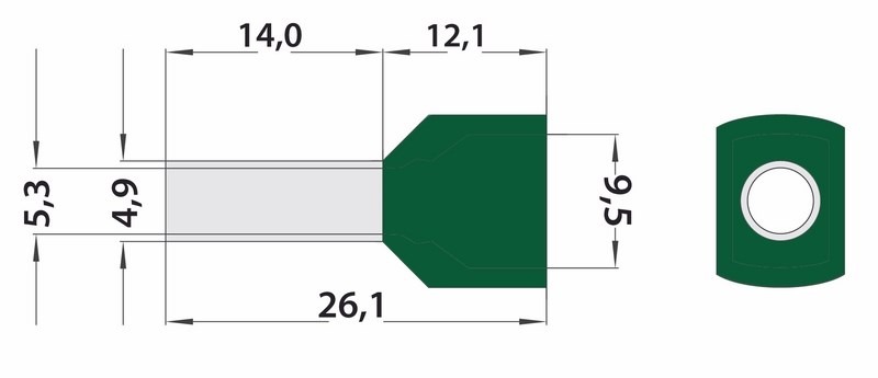 Наконечник штыревой втулочный изолированный (НШВИ F-14 мм) 2х6 мм² зеленый REXANT предназначен для создания быстрого и качественного подключения различного электрооборудования и монтажа электросетей. Такой современный способ подготовки кабеля к соединению заменяет процесс облуживания или скрутки многожильных медных проводов, формируя целостное окончание кабеля с последующим подключением промышленного или бытового электрооборудования.
