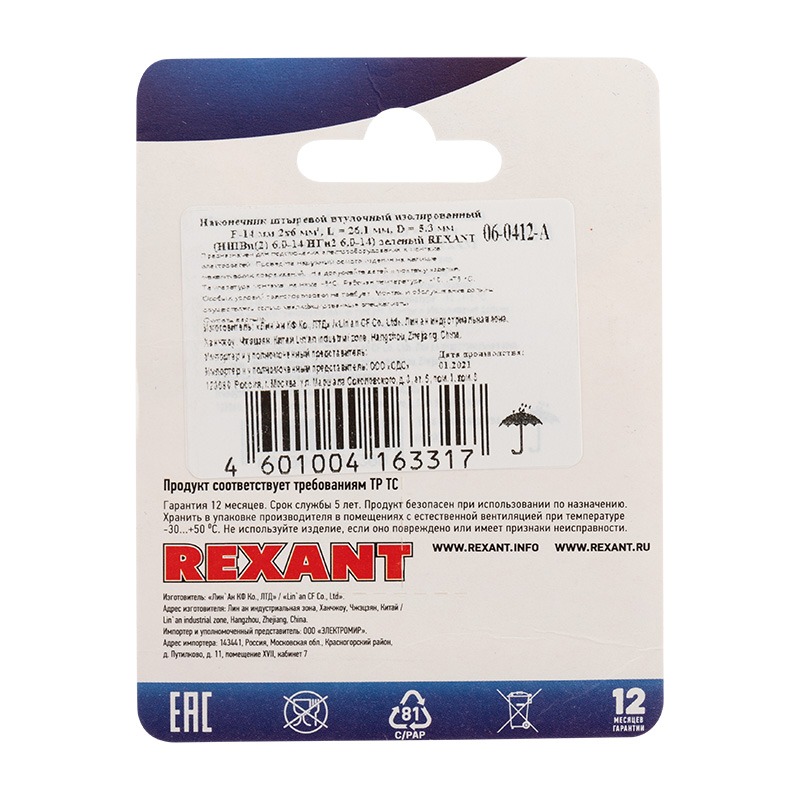 Наконечник штыревой втулочный изолированный (НШВИ F-14 мм) 2х6 мм² зеленый REXANT предназначен для создания быстрого и качественного подключения различного электрооборудования и монтажа электросетей. Такой современный способ подготовки кабеля к соединению заменяет процесс облуживания или скрутки многожильных медных проводов, формируя целостное окончание кабеля с последующим подключением промышленного или бытового электрооборудования.