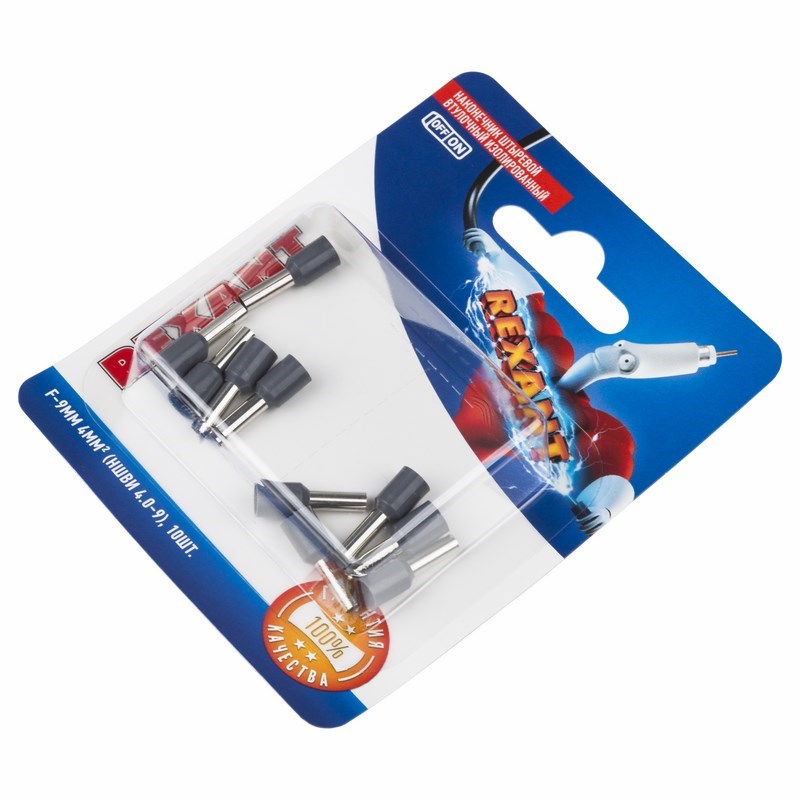 Наконечник штыревой втулочный изолированный F-9 мм 4 мм² (НШВи 4.0-9 / Е 4,0-9 / Е4009) серый, в упак. 10 шт. REXANT