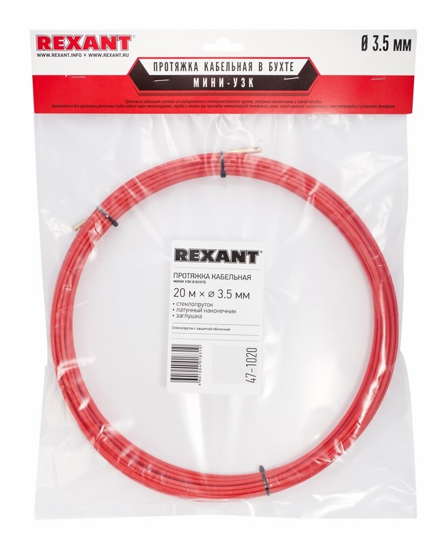 Протяжка кабельная REXANT (мини УЗК в бухте), стеклопруток, d=3,5 мм, 20 м, красная