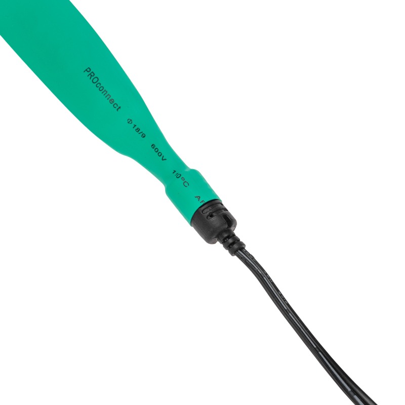 Термоусадочная трубка PROconnect 18,0/9,0 мм 1 м зеленая— один из самых распространенных термоусаживаемых материалов. Изготовлены термоусадочные трубки из высокотехнологичного материала — полиолефина. Начальный диаметр трубки составляет 18,0 мм, после усадки 9,0 мм.<br> Принцип действия термоусадочных трубок — изменение своего диаметра путем усадки в два раза. Таким образом трубка плотно охватывает предмет, на который происходит усадка, и обеспечивает прочную и надежную защиту и изоляцию. Кроме того, это надежный герметик, усиливающий прочность элементов конструкции.<br> Назначение: предназначены для восстановления поврежденной изоляции, герметизации поверхностей и электрических соединений кабелей и проводов, бандажирования и маркировки проводов, для создания антикоррозийных защитных покрытий. Рекомендуется проведение работ по усадке трубок с помощью специальных электромонтажных фенов и газовых горелок марки REXANT.<br> <br> Технические характеристики:<br> 1. Горючесть: без подавления горения<br> 2. Относительное удлинение при разрыве: не менее 200 %<br> 3. Температура усадки минимальная: 110 °С<br> 4. Температурный диапазон в режиме эксплуатации: -55...+100 °С<br> 5. Прочность на растяжение: не менее 10.4 МПа<br> 6. Электрическая прочность: не менее 19.7 кВ/мм<br> 7. Рабочее напряжение: 600 В<br> 8. Удельное электрическое сопротивление: 1014 Ом/см<br> 9. Коэффициент усадки: 2:1<br> 10. Диаметр трубки до усадки: 18 мм<br> 11. Диаметр трубки после усадки: 9,0 мм<br> 12. Толщина трубки после усадки: 0,60 мм<br> Гарантийный срок эксплуатации - 7 лет<br> Гарантийный срок хранения - 7 лет