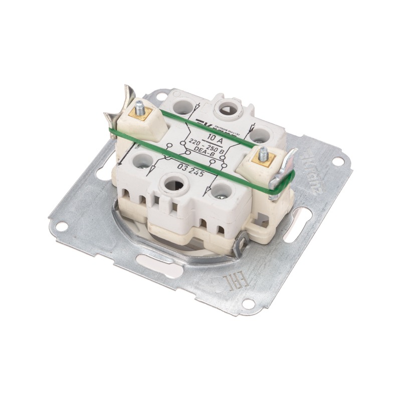 Механизм одноклавишного выключателя KRANZ – серия DEA, для скрытого монтажа, на ток 10А. Предназначен для подключения к электрической сети внутри помещений для включения и выключения света.