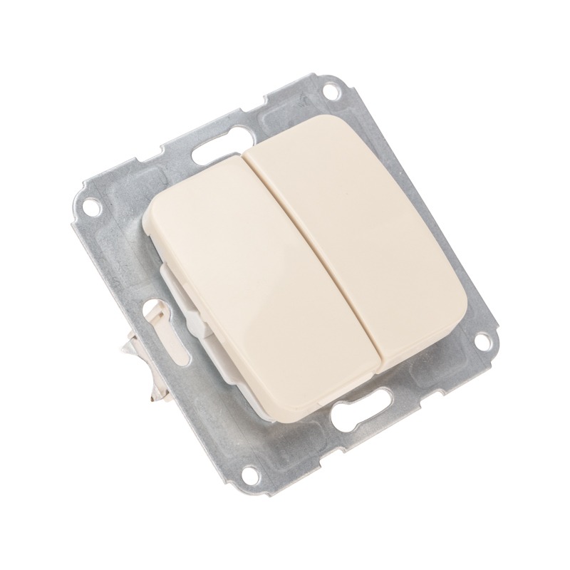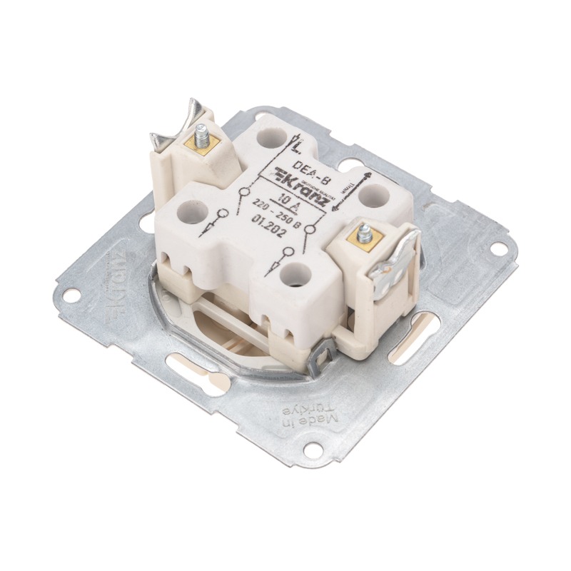 Механизм двухклавишного выключателя KRANZ – серия DEA, для скрытого монтажа, на ток 10А. Предназначен для подключения к электрической сети внутри помещений для включения и выключения света.